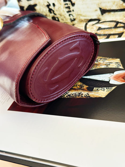 Étui ou marmotte à montres Cartier vintage en cuir bordeaux