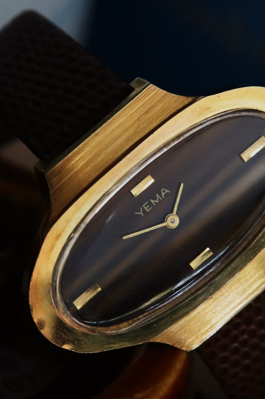 Yema vintage plaquée or, cadran oeil de tigre, année 70