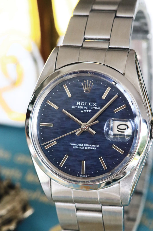 Rolex Oyster Perpetual Date Réf. 1500 – Cadran Bleu Mosaïque - no lume Année 1972