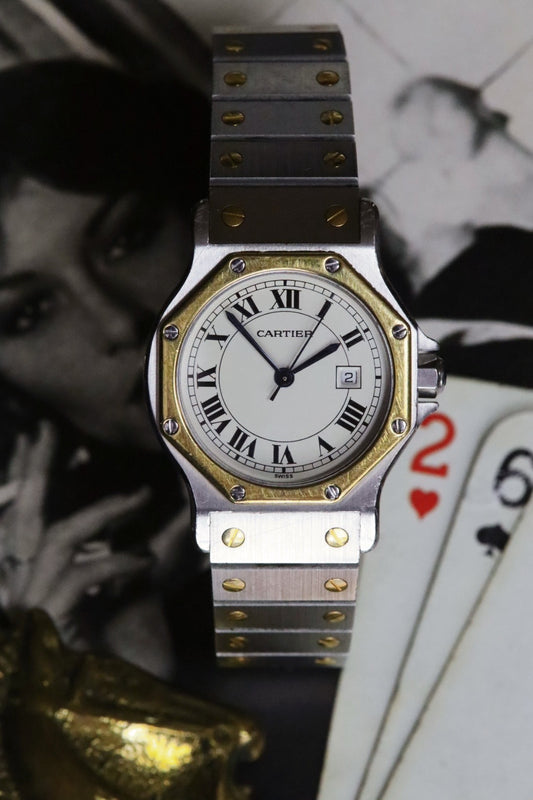 Cartier Santos octagonal, yellow gold and steel, vintage watch