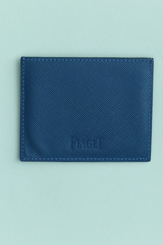 Piaget card holder in blue grained leather – Sky blue trim – 4 slots