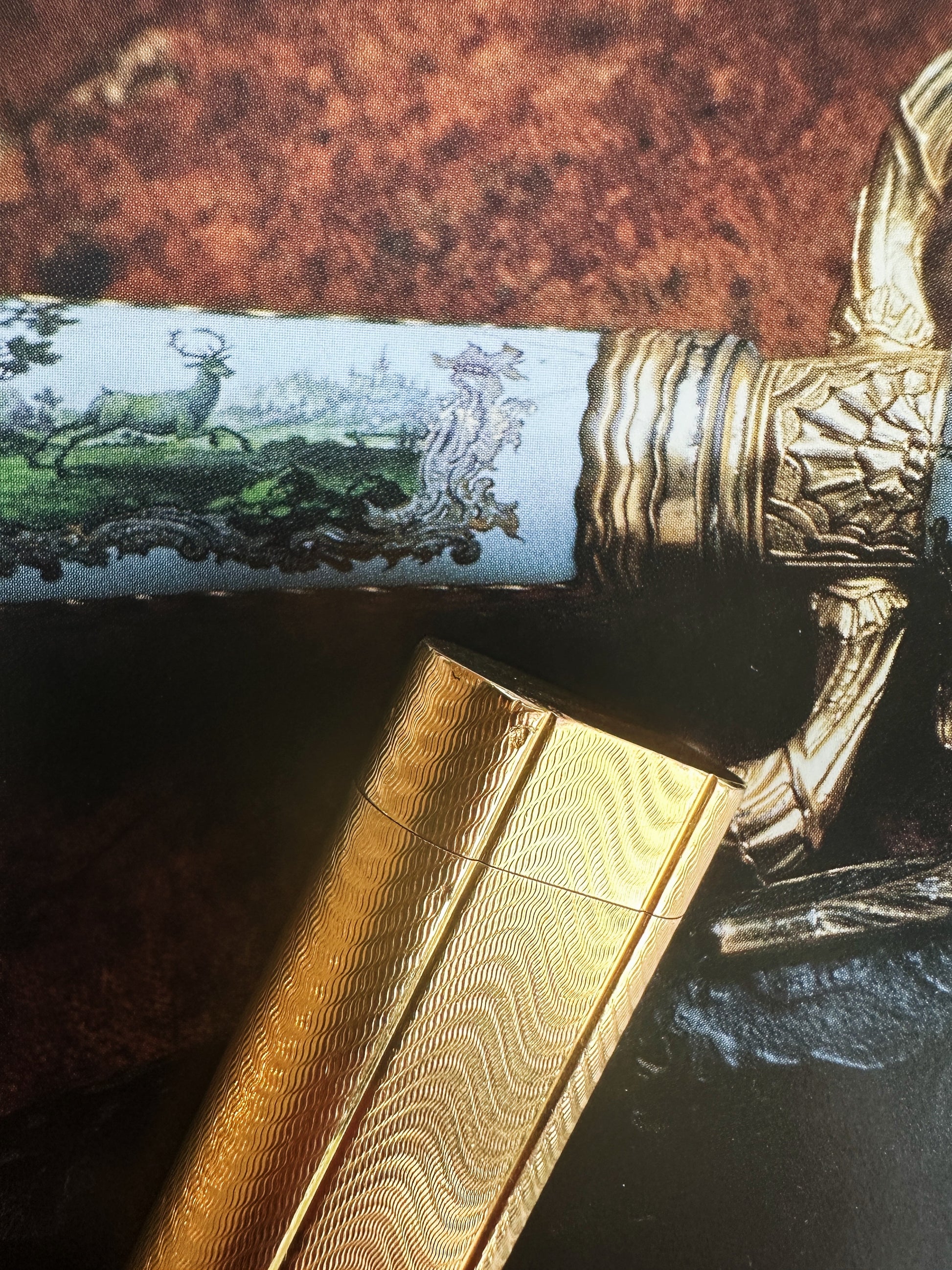 Discover this superb vintage Cartier gold-plated lighter at Mr Neville Watches , a true collector's item with a timeless design. Its gold body is adorned with a refined zigzag guilloché pattern , emblematic of the elegant and luxurious style of Cartier Paris . Every detail reflects the excellence of the craftsmanship, from the precise mechanism to the meticulous finishing.