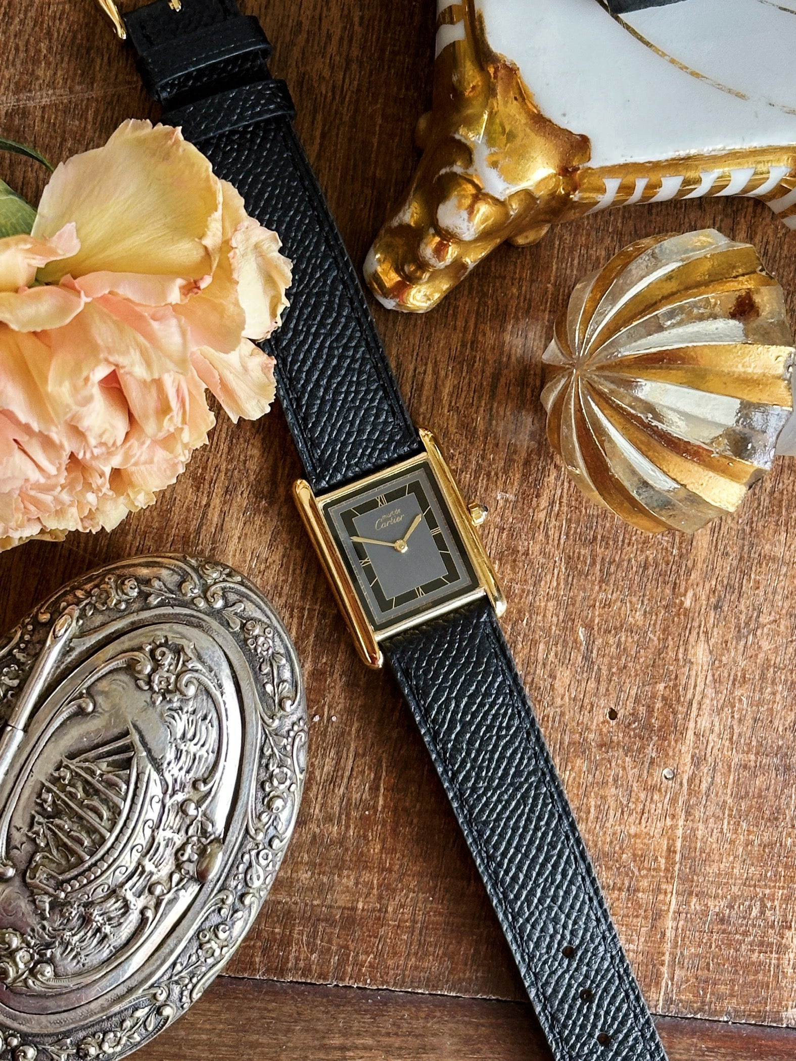 Cette Tank Must référence 681006 est équipée d’un bracelet en cuir noir neuf, souple et confortable, qui met en valeur la pureté du cadran et la finesse du boîtier. Sa boucle ardillon Cartier, simple et élégante, assure un maintien parfait tout en restant fidèle à l’esthétique originale de la montre.