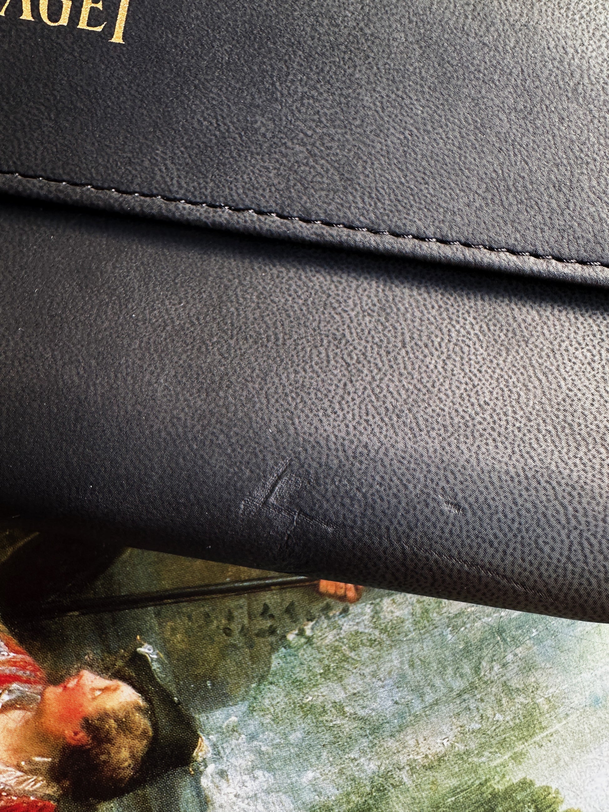 When closed, the pouch measures approximately 22 × 11 cm , and when open, it expands to 22 × 27 cm . It is offered in very good overall condition , despite a small, discreet flaw visible in the photos.