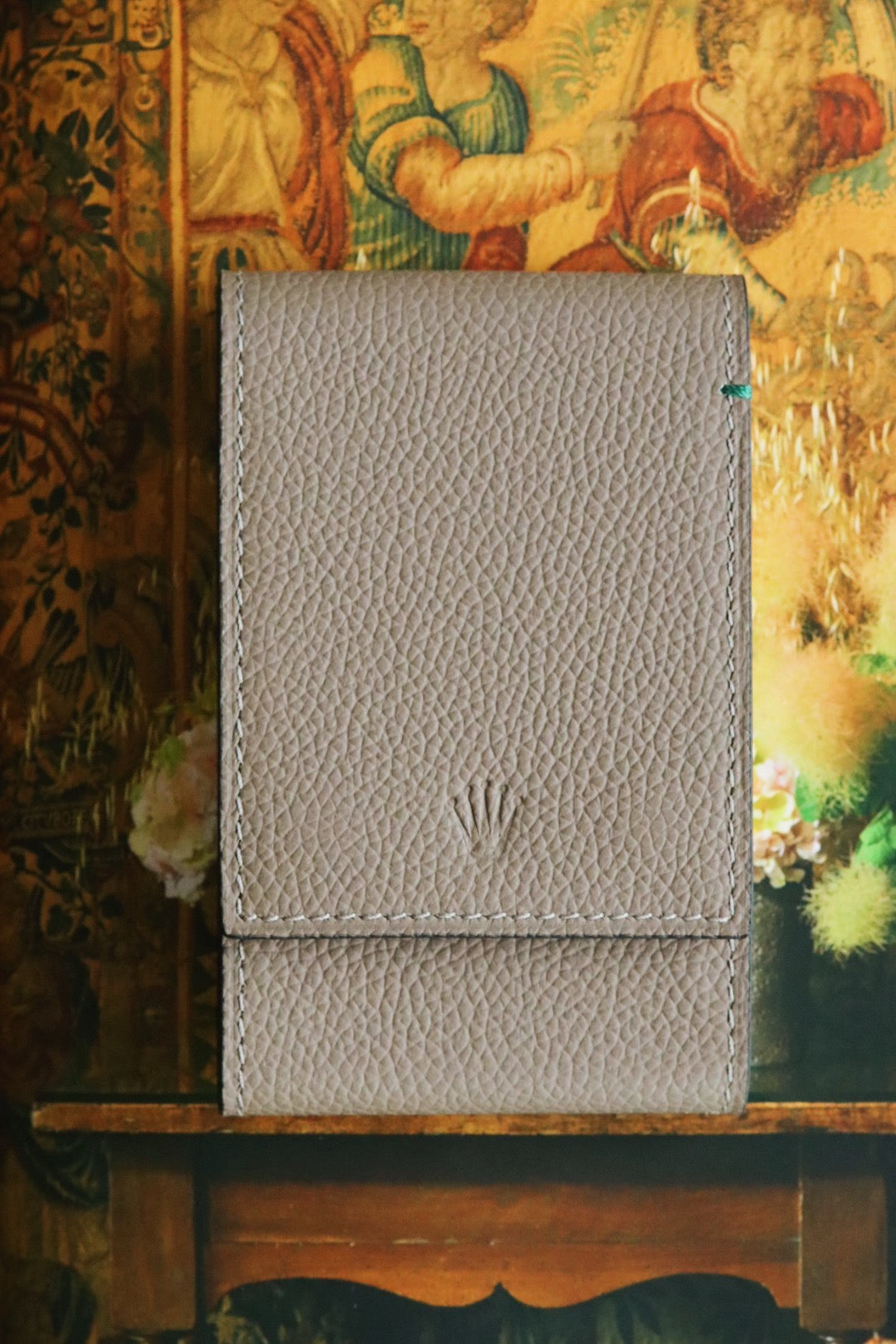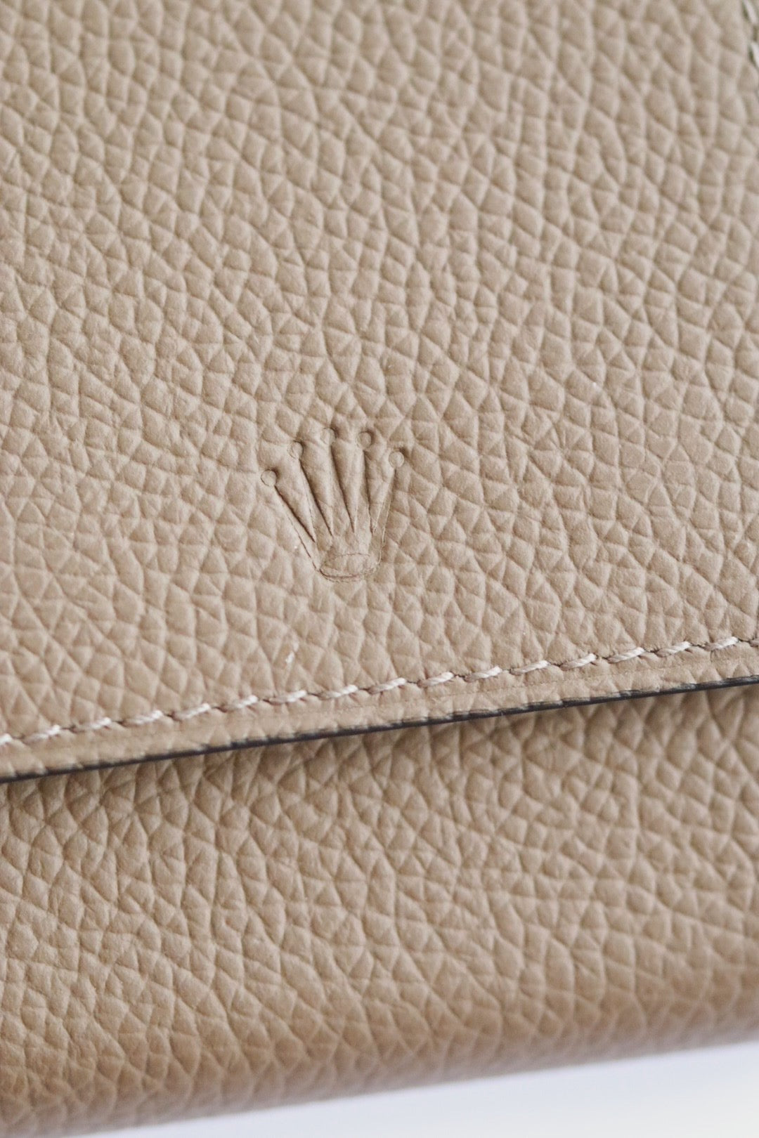 Un accessoire luxueux, raffiné et fonctionnel : cet étui Rolex en cuir grainé taupe est bien plus qu’une pochette, c’est un écrin de voyage pour vos plus belles montres.