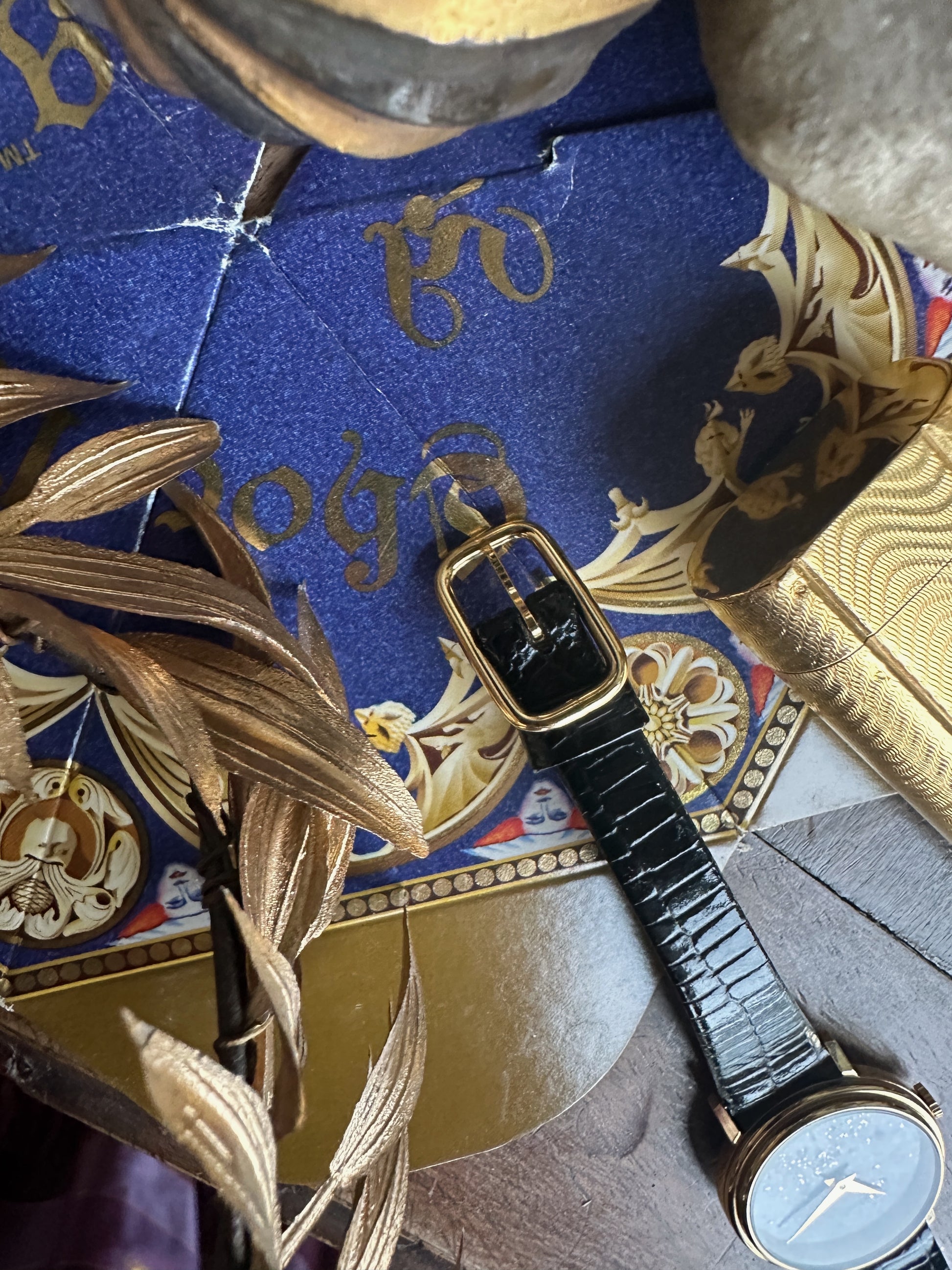 The gold-plated dauphine hands perfectly complement the case, lending a refined and traditional finish. The original black patent leather strap, signed ESKA, adorns your wrist with chic and comfort. It is fitted with a gold-plated folding clasp. The maximum circumference of the strap is 16.5 cm .
