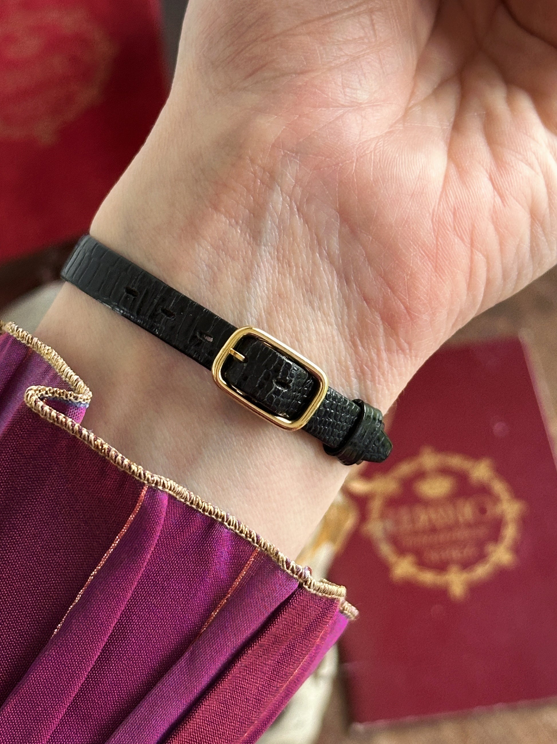 | Bracelet | Original black patent leather, maximum circumference 16.5 cm |