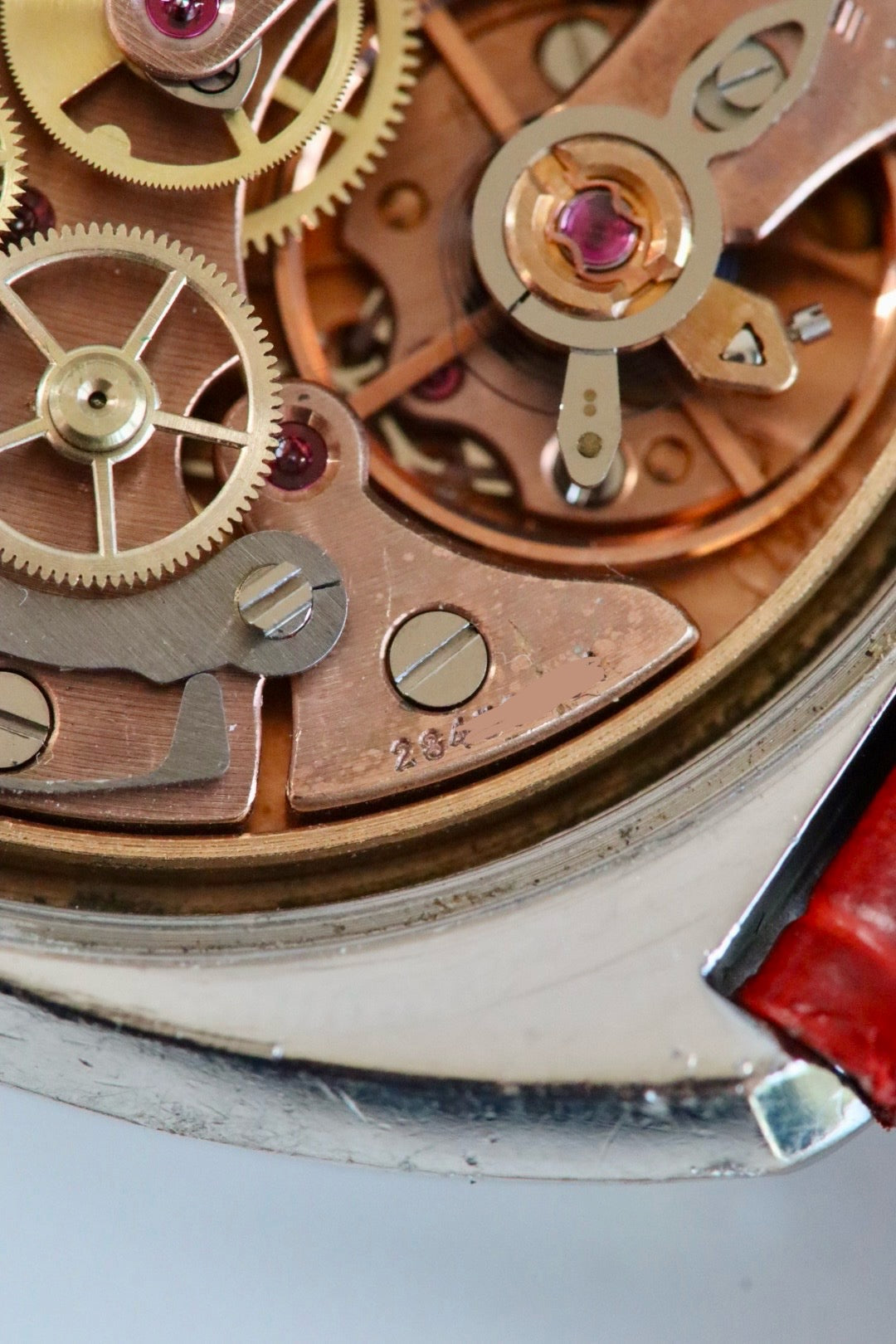 Ce mouvement, précis et fiable, témoigne de l’ingéniosité des ingénieurs Omega qui ont su allier sobriété technique et efficacité, dans un boîtier étonnamment plat pour un chronographe de cette époque.