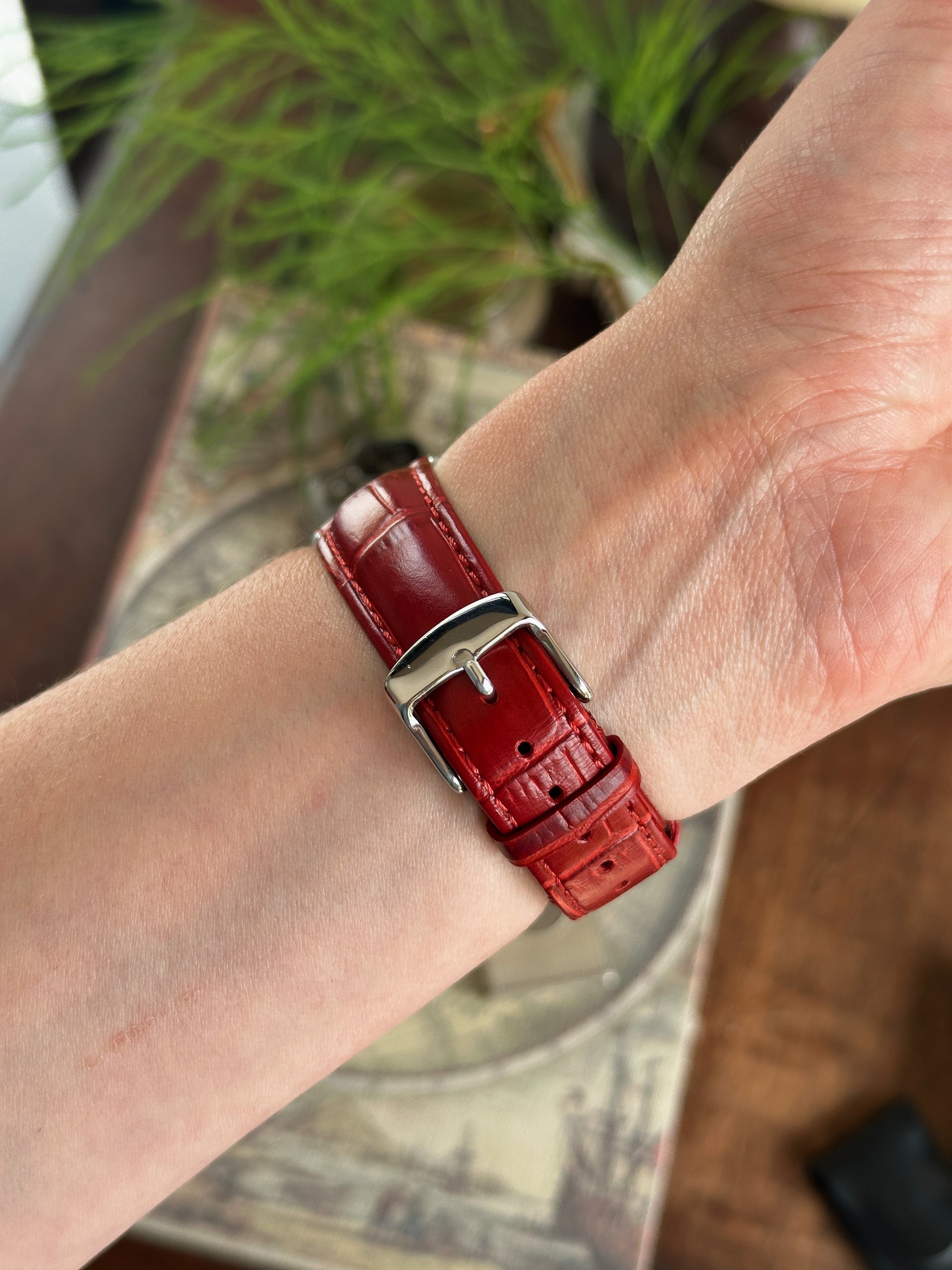 - Bracelet : Cuir rouge neuf avec boucle ardillon acier Omega
