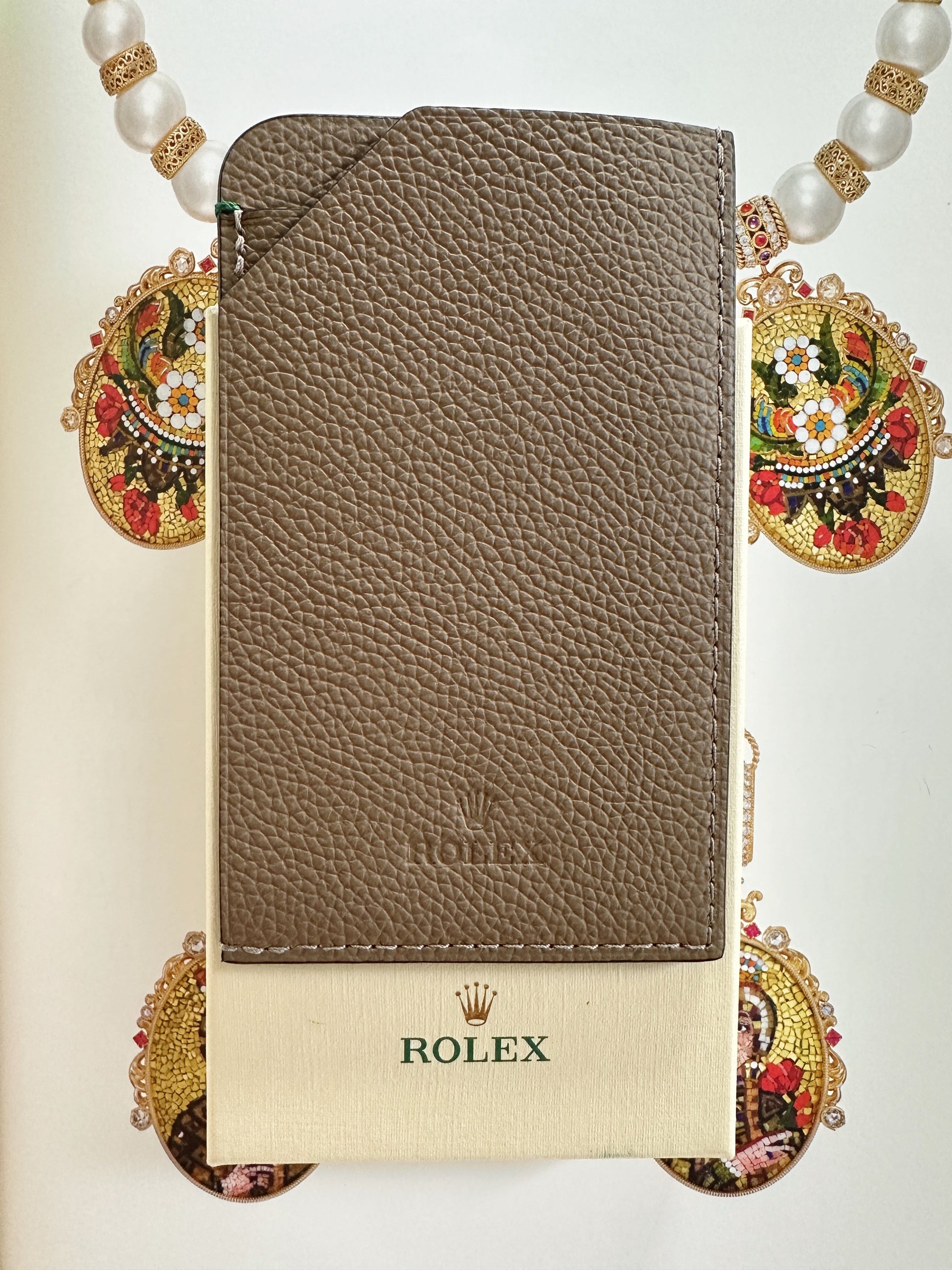 Porte-carte Rolex en cuir grainé taupe – Un objet horloger rare et élégant