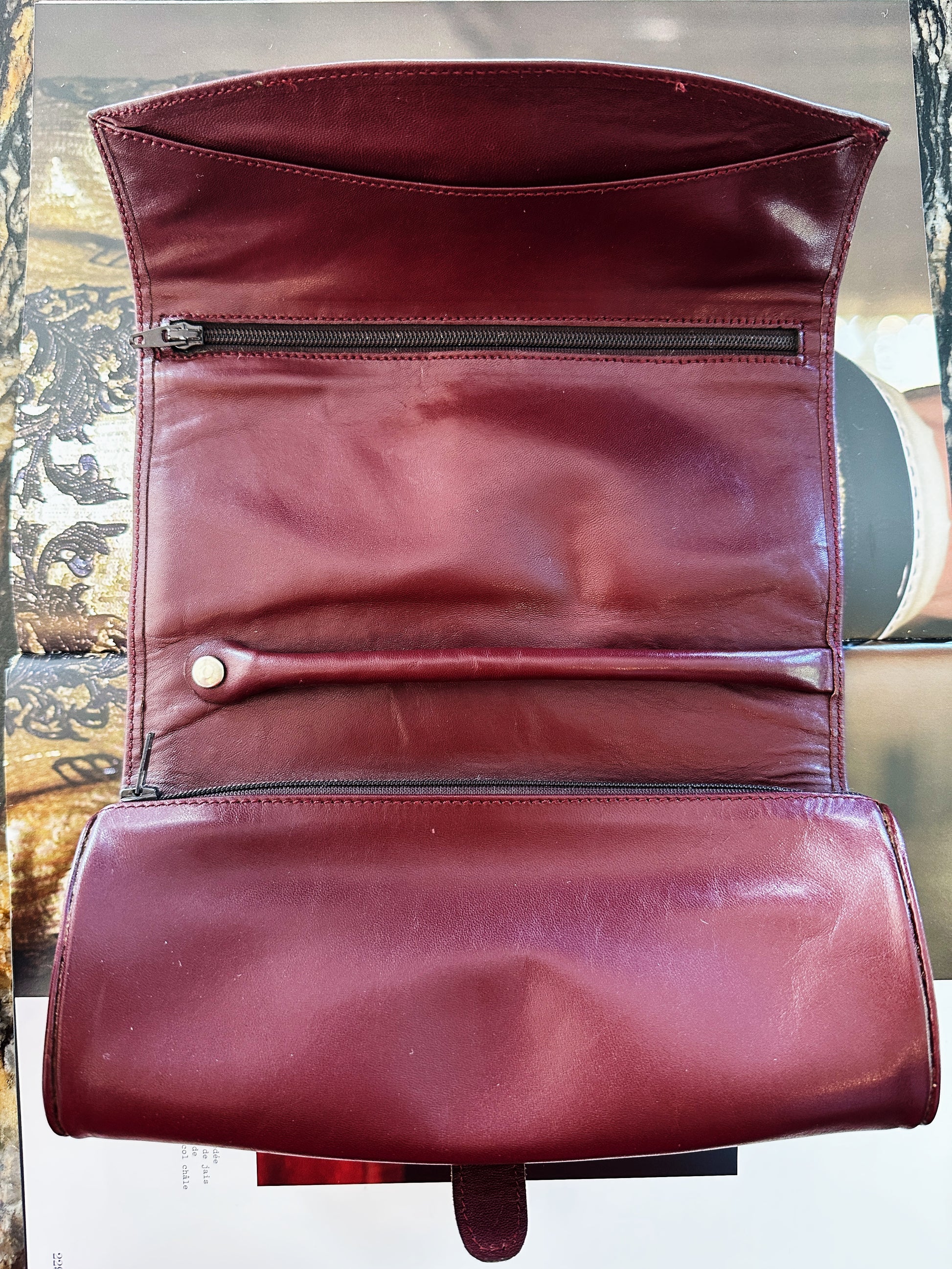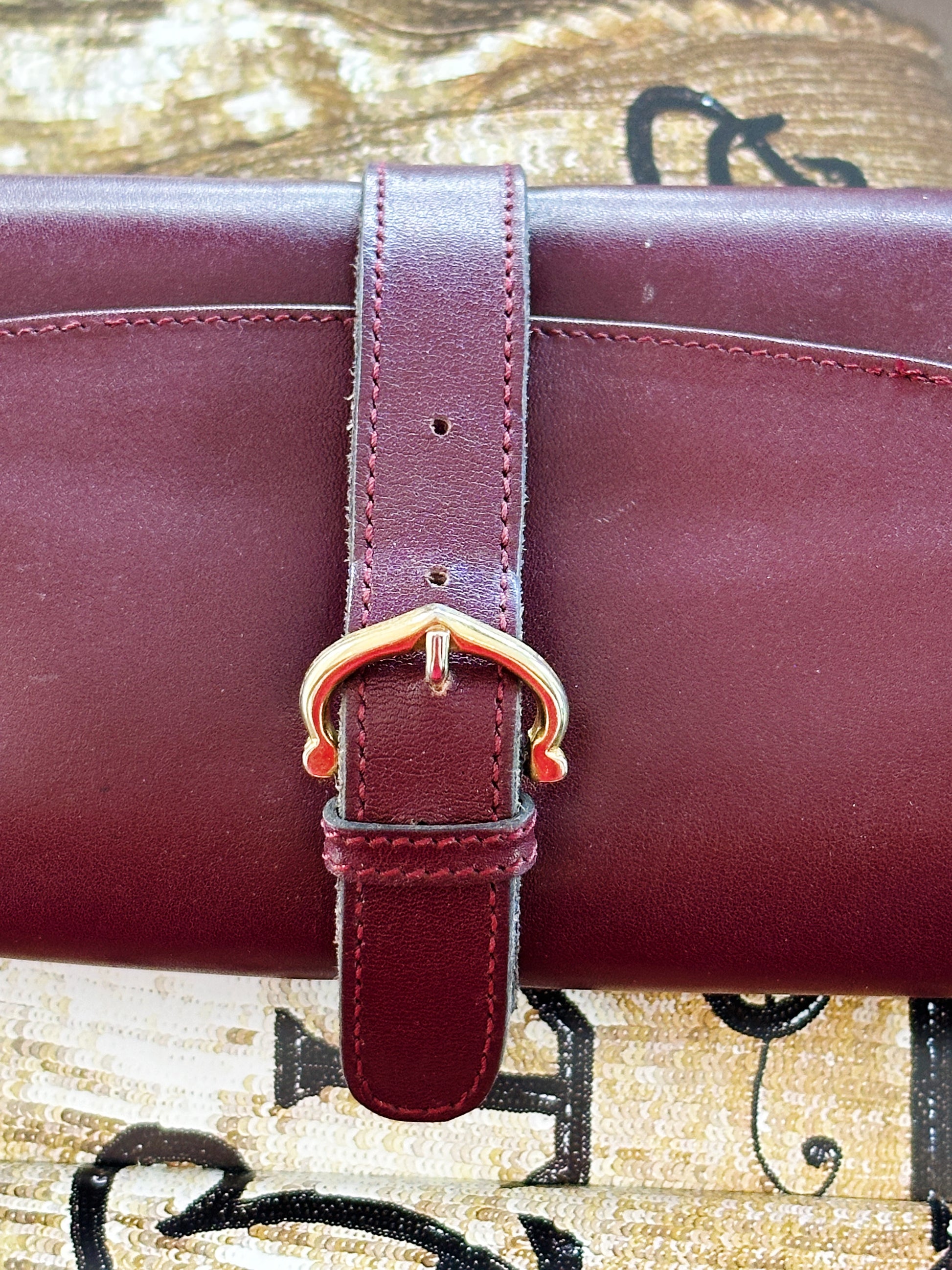 Étui ou marmotte Cartier vintage en cuir bordeaux – pochette ou trousse à bijoux & voyage