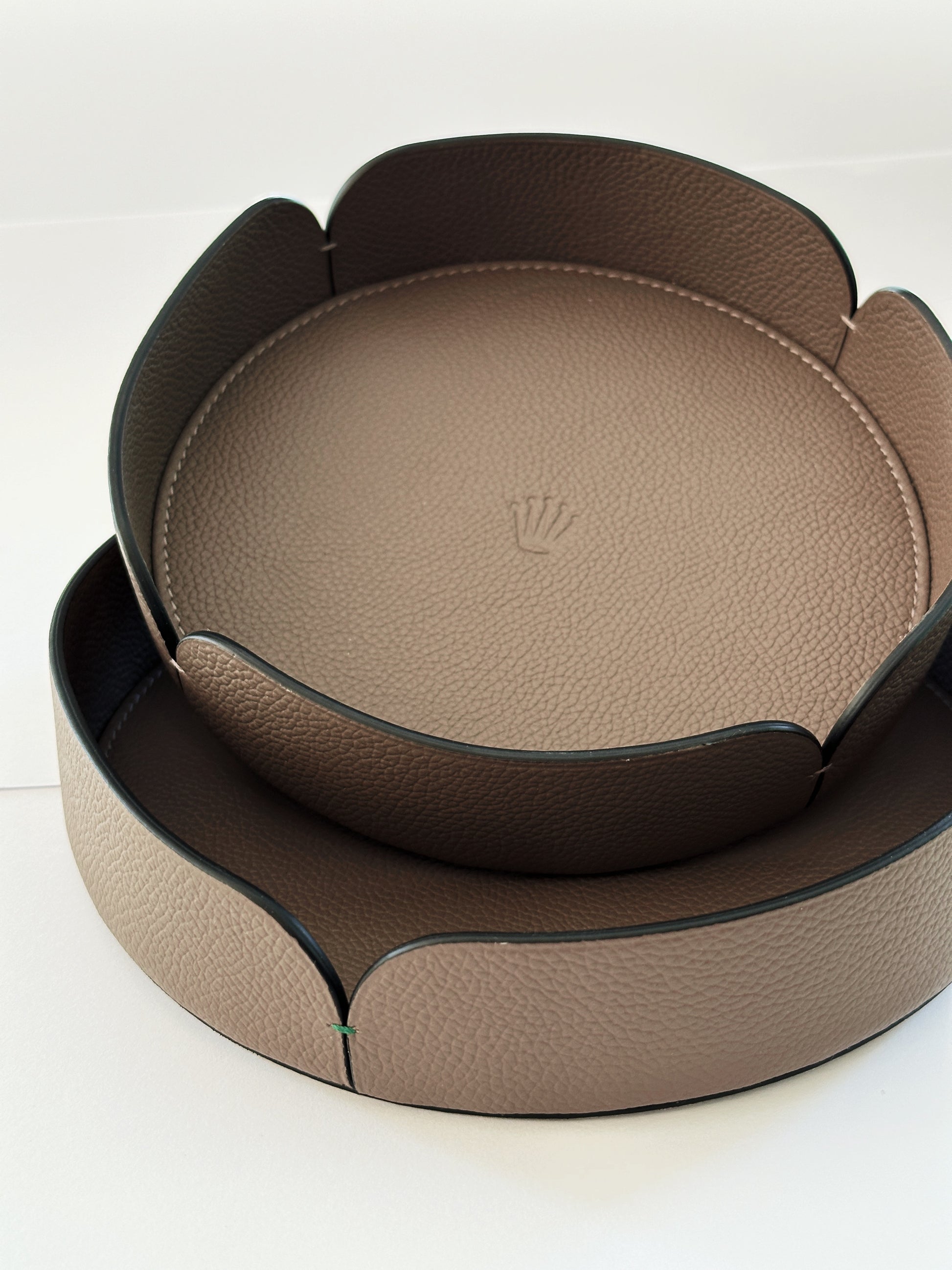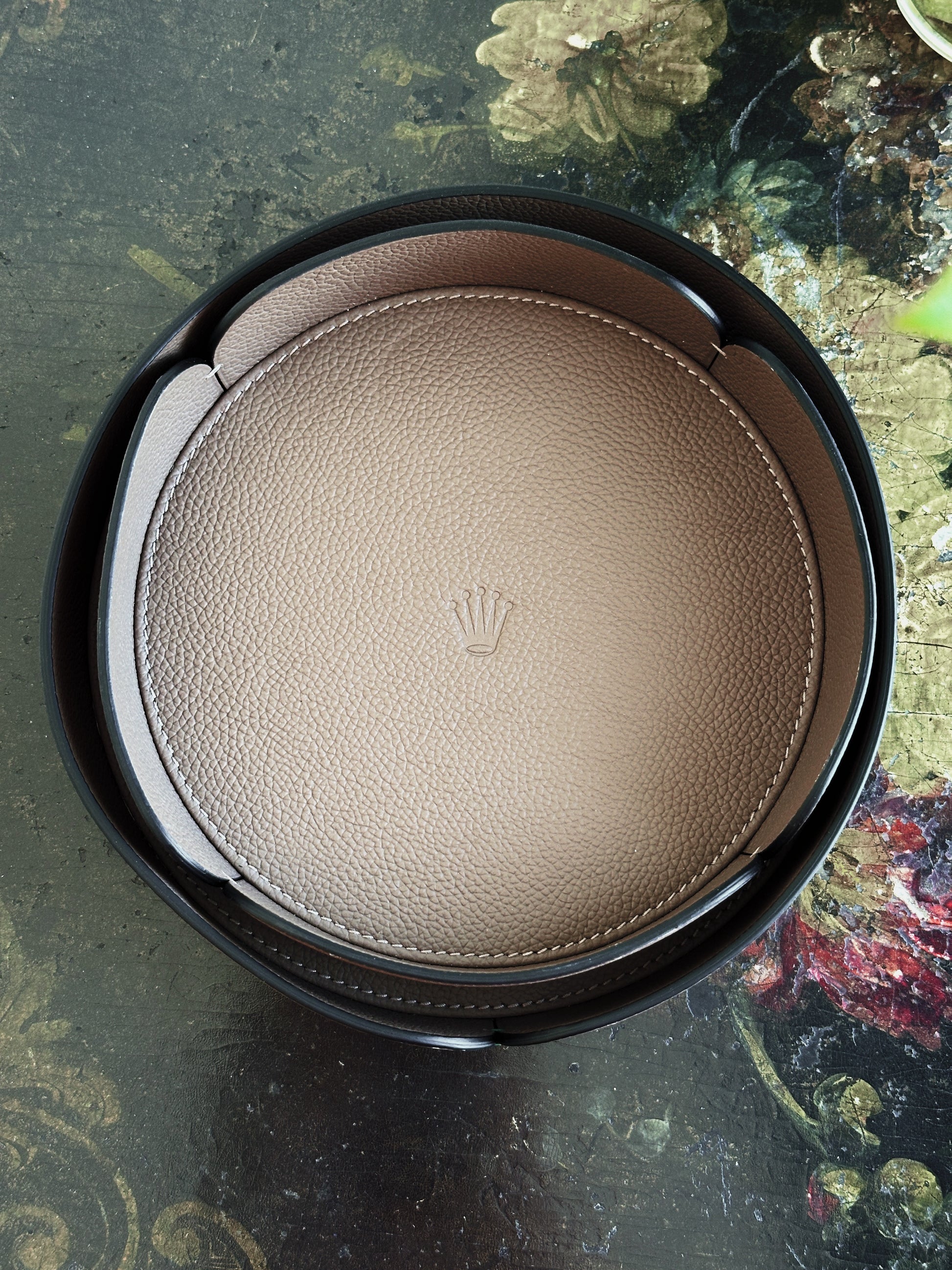 Vide-poche Rolex en cuir grainé taupe – Un accessoire d’exception