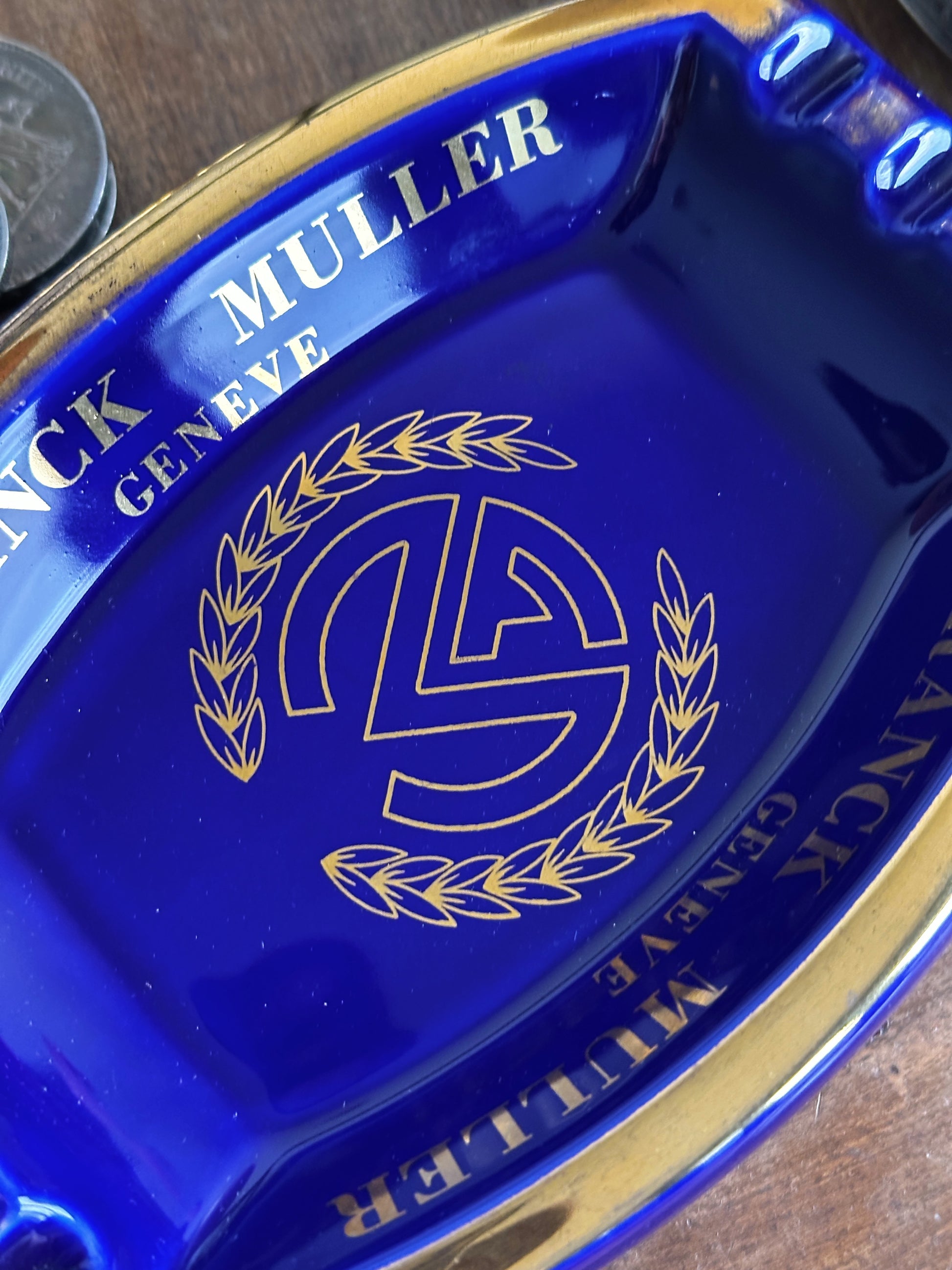 Cendrier Franck Muller Genève bleu roi vintage : pièce de collection haut de gamme