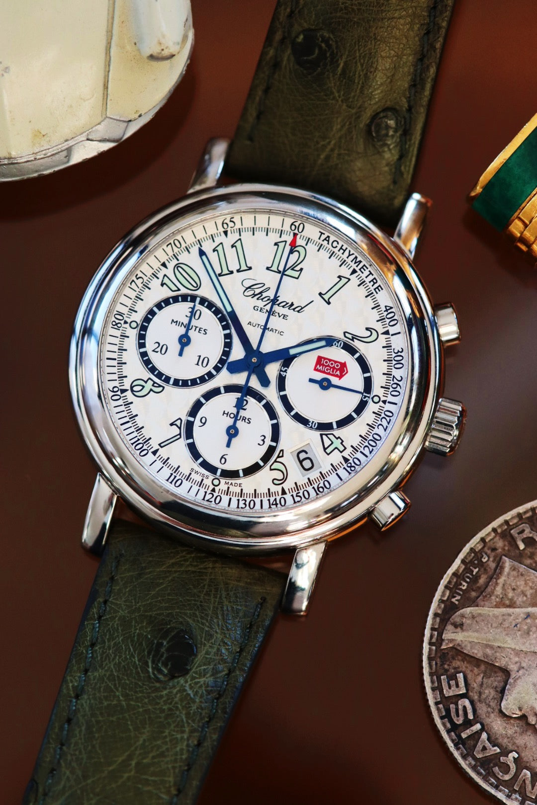 La collection Chopard Mille Miglia rend hommage à la mythique course automobile italienne, surnommée « la plus belle course du monde ». Depuis la fin des années 1980, Chopard est partenaire officiel de la Mille Miglia et développe des montres pensées pour les gentlemen drivers, mêlant performance, lisibilité et élégance sportive.