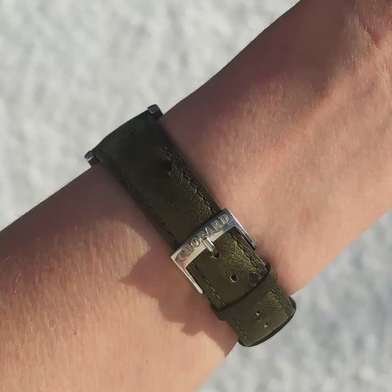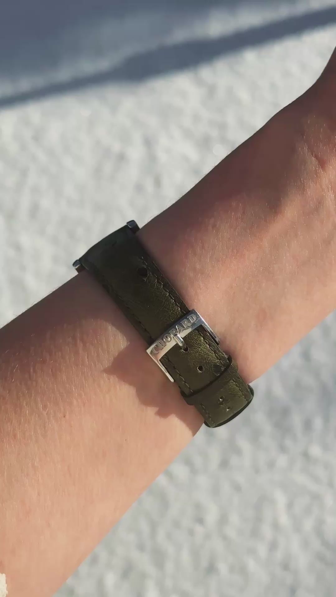 | Bracelet | Neuf, cuir d’autruche vert (Neville Watches × Jean Rousseau) |