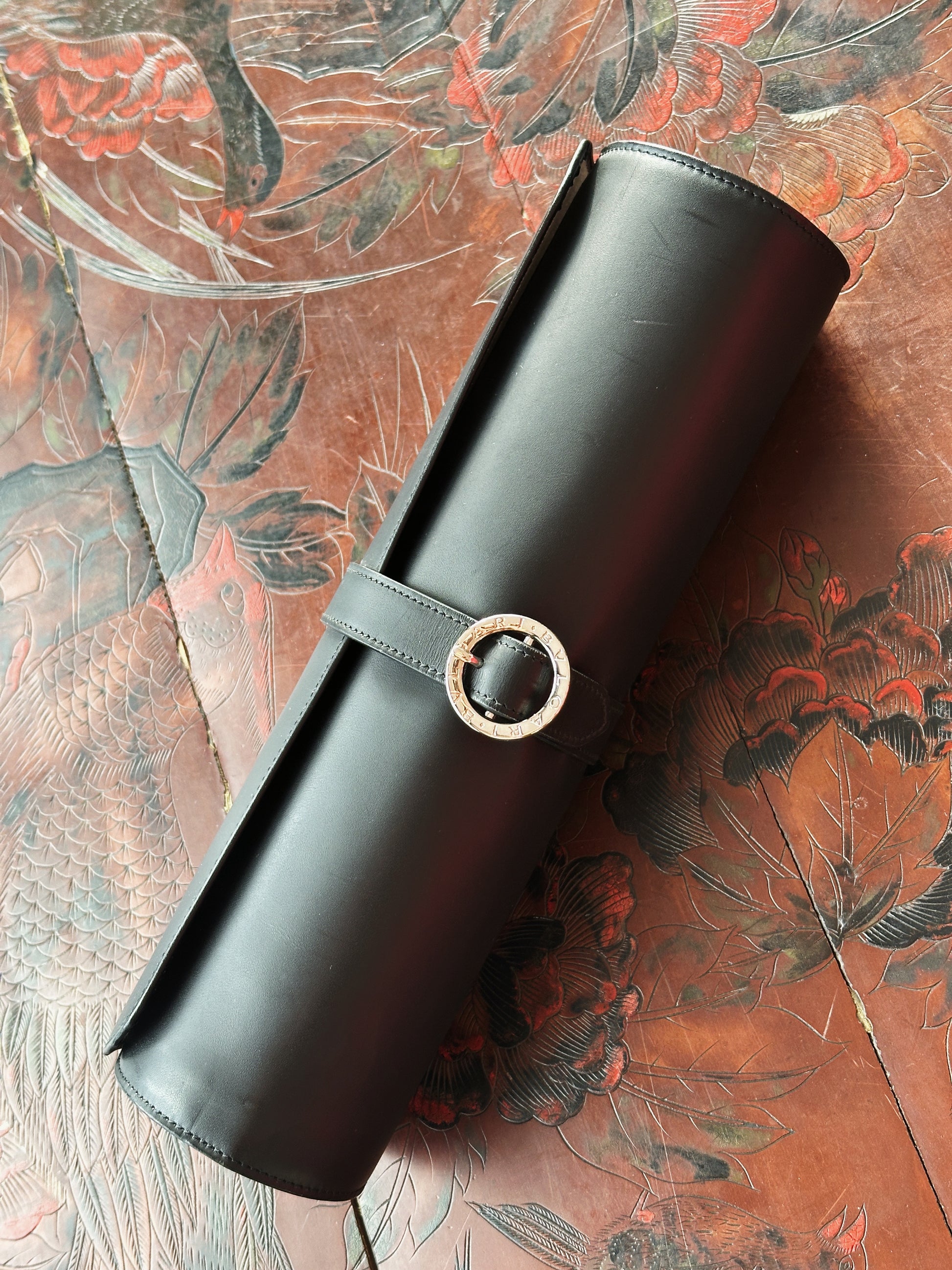 De forme cylindrique (en boudin), cet étui marmotte est idéal pour le voyage ou le rangement. Son intérieur doux permet de protéger jusqu’à 4 montres contre les chocs et les frottements, tout en les maintenant parfaitement en place. Le système de fermeture par lanière assure une excellente tenue une fois roulé.
