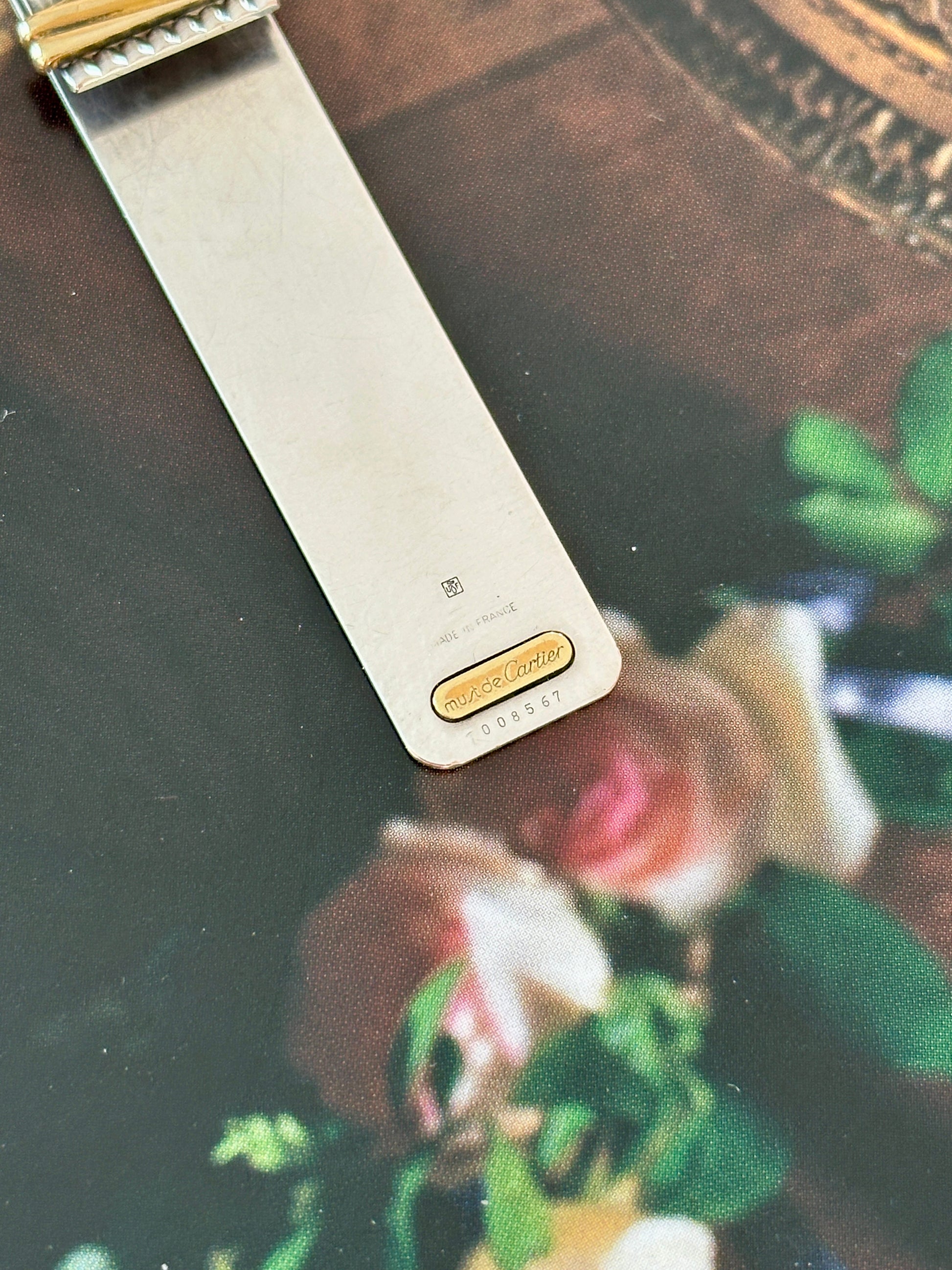 Mr Neville Watches sélectionne exclusivement des pièces de luxe authentiques et en excellent état. Cette pince à billets / marque pages Cartier Must en métal argenté et plaqué or est une pièce recherchée, à la fois objet de collection et accessoire pratique, parfaite pour sublimer votre style.