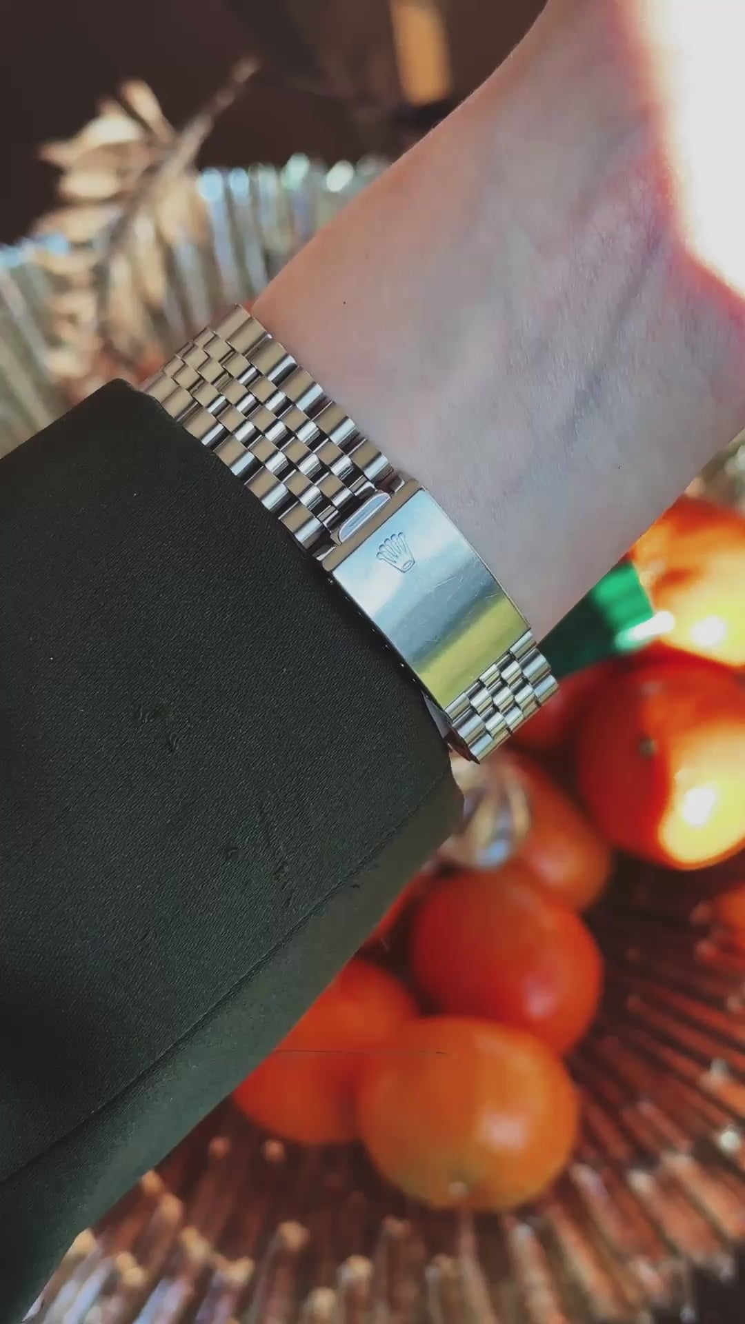 Le cadran noir rare apporte une présence sobre et très moderne, tandis que la lunette cannelée en or blanc signe immédiatement l’ADN Rolex : des jeux de lumière fins, jamais ostentatoires, qui habillent la montre du matin au soir.