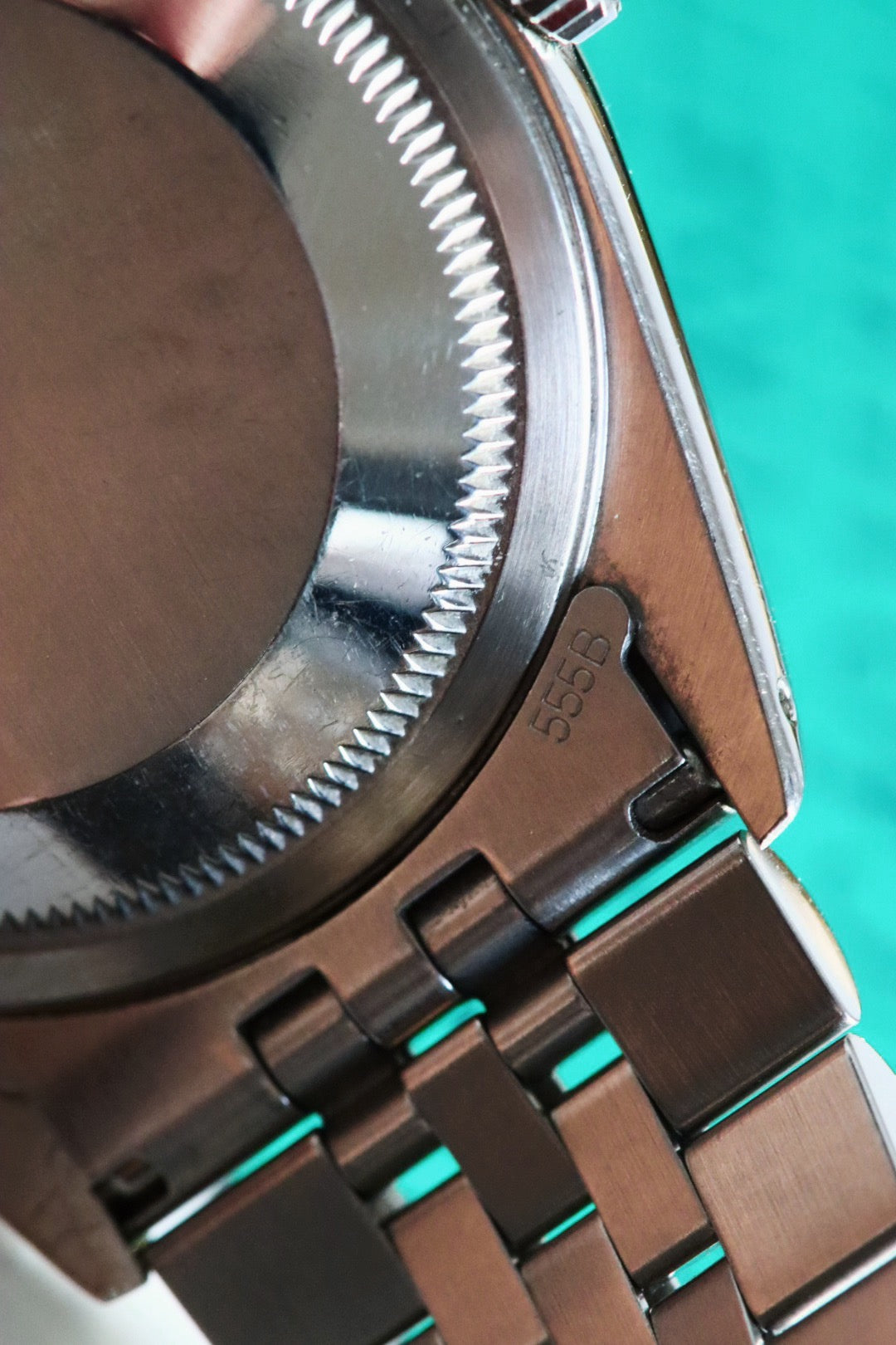 La montre est montée sur un élégant bracelet Jubilee, offrant un confort remarquable au porter. Il est équipé d’une boucle déployante Rolex, assurant à la fois sécurité et esthétisme. L’ensemble présente une belle homogénéité visuelle avec le boîtier et la lunette cannelée.